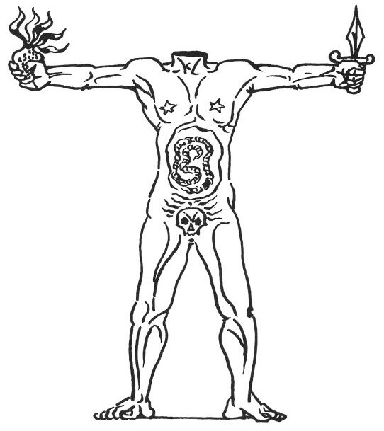 If myth, understood as either superstition or ideology, serves to uphold those transcendental principles that are the crown on top of our normative beliefs about the world, Bataille’s mythic thinking chops off its head. A headless or acephalic figure (drawn for him by the surrealist André Masson) was the emblem of the journal he edited, Acéphale. This figure is a guillotined ‘Vitruvian Man’, Leonardo Da Vinci’s embodiment of humanist reason. In keeping with this, Bataille’s myth-like writings upend traditional ways of thinking about the world and our place in it. His short texts, ‘Rotten Sun’ and ‘The Pineal Eye’, tear the sun from its role as the mythic symbol par excellence of the Western Enlightenment, and re-cast it in a new mythic light—a fiery monstrosity, blinding and deadly. His image for the complexity of human life—as separate individuals who are inseparable from one another, mediated as we are by the maze of language—is the mythic Labyrinth, a paradoxical architectural form with no hard boundary between its interior and exterior. In these works, and many others, we see myth mobilised to help us think about the complexity and paradox of the world, not to escape from it.