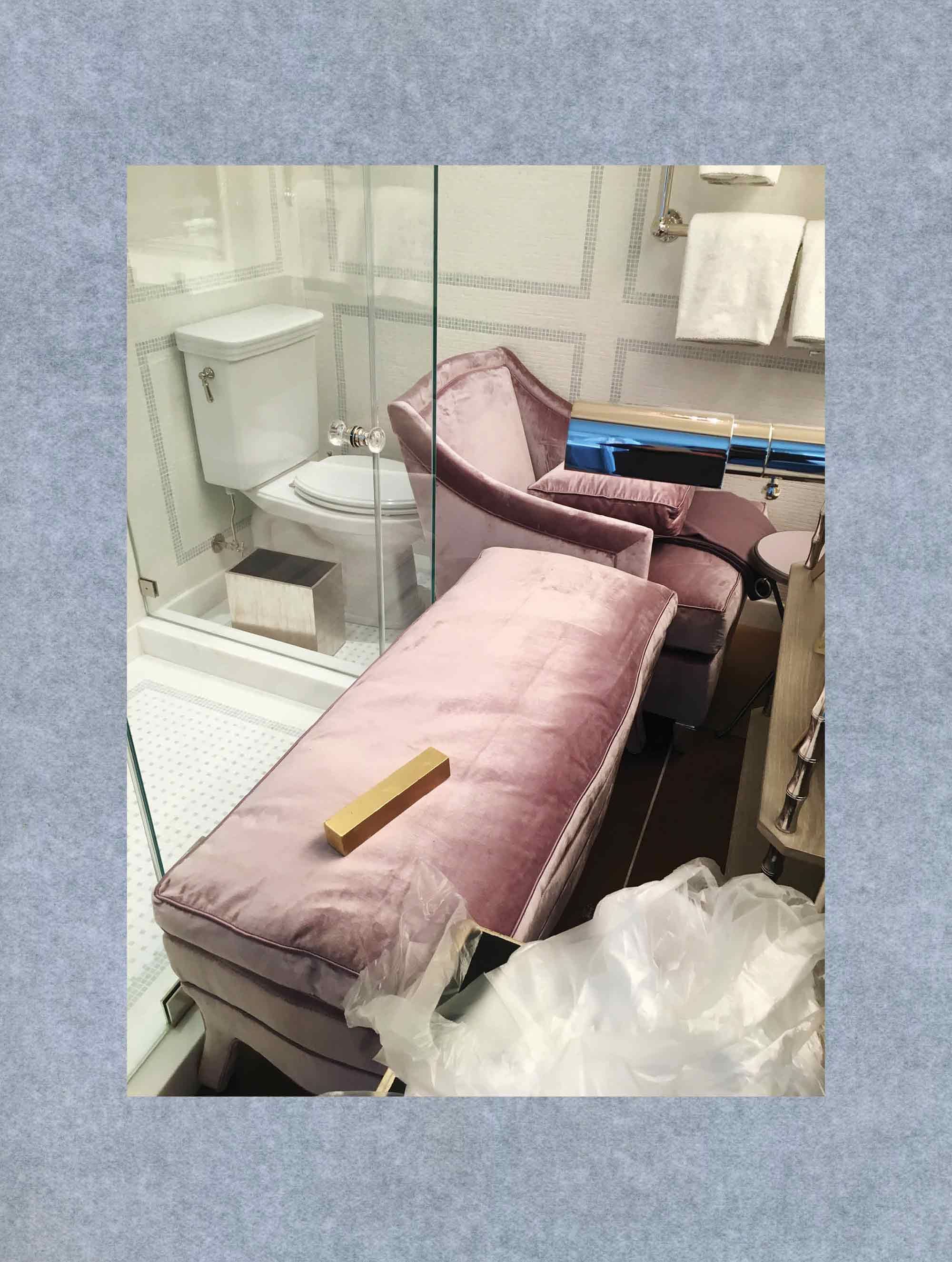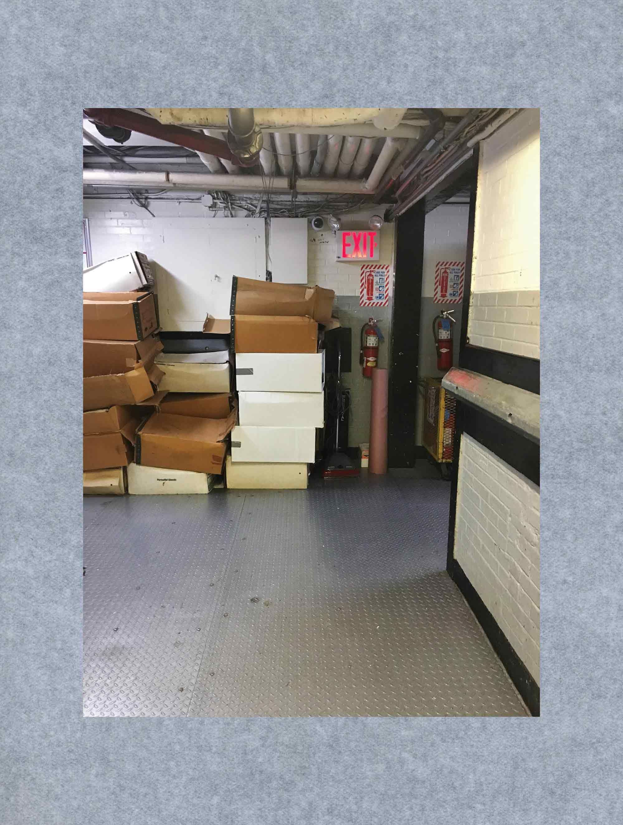 To enter, you must descend, circle around, and come up through the back. A side entrance — all respectable Upper East Side apartment buildings have one — subtly marked. Low ceilinged, hot and maze-like, the basement regulates the flow of workers in and out of daily service. My business is in a pied-à-terre on the 8th floor, north side. To get there one must traverse long, narrow corridors of subterranean space. Follow the yellow line along the boiler room and service W.C., keep on past the dumpsters around a tiled corner to elevator B. Elevator B is manned by a familiar face who chats before depositing me next to the trash cans outside a door that is slightly ajar. I slip through.