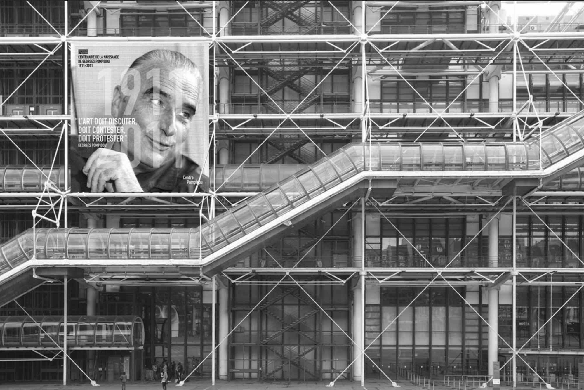 The Centre Pompidou in Paris emerged from the episode of class antagonism that we know as May 68. As is well known, the government of Charles de Gaulle was shaken to its core by social unrest and strike action that ground the French economy to a halt, and that many hoped, and many feared, would precipitate revolution. The situation was diffused by an election which saw the Gaullists comfortably re-elected, but with Georges Pompidou replacing de Gaulle as president. Pompidou was a more centrist and pro-American conservative than the patently authoritarian General de Gaulle. In the years that followed his election, Pompidou embarked on a series of projects to ‘modernise’ Paris, such as the demolition the historic Les Halles markets, replacing them with a shopping mall, and the construction of a modern art museum, at first called the Centre Beaubourg and later renamed after Pompidou himself.